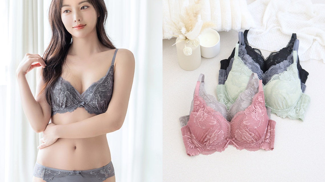 【新デザイン登場】”自胸で叶えるクッキリ谷間”Leeneシリーズから、贅沢でエレガントな花柄デザインの「フローリレースカシュクールブラ」を発売!