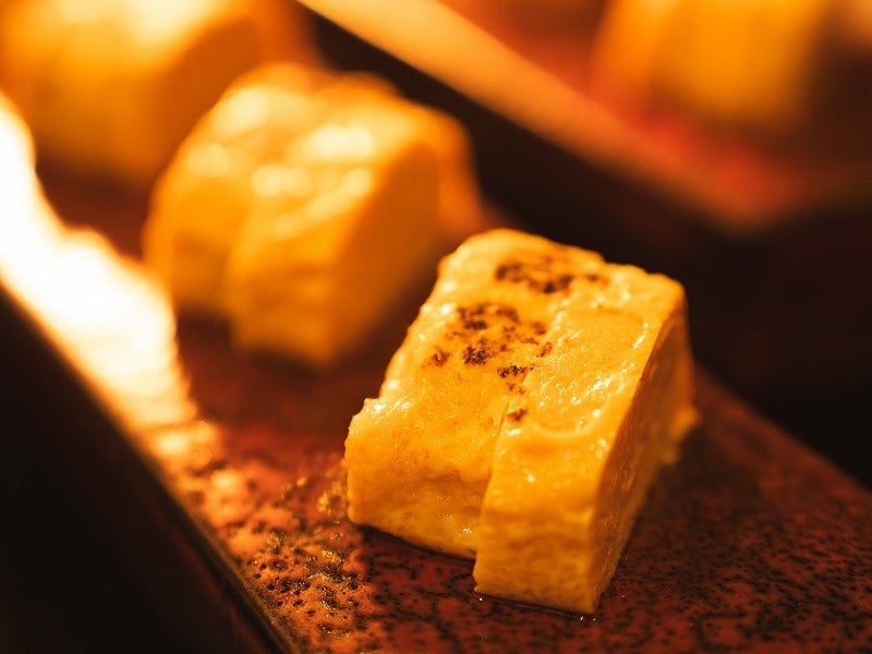 先代の古窯料理長が考案以来30年、脈々と守り続けられたレシピで作り上げる古窯の厚焼き玉子は、料理人がオープンキッチンで実演料理することを前提に作られた秘伝のレシピです。深みのあるダシとふわっと口の中に広がる食感からリピーターも多い大人気メニュー。古窯の焼印を入れるパフォーマンスも好評です。