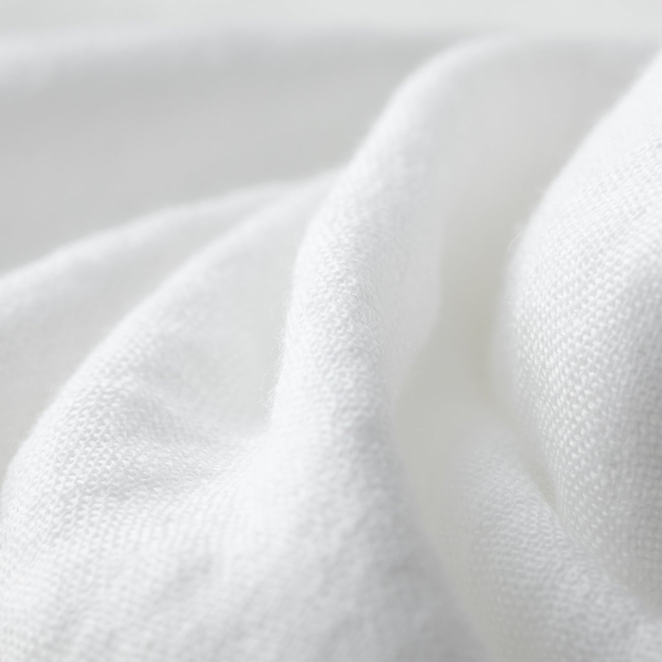 やわらかな触感を作り出すために高品質の極細綿糸を使用し、特許技術によって織り上げられた綿100%の「マシュマロガーゼ」。ふんわりマシュマロのような柔らかさと空気をまとっているような軽さ、また生地と生地の間に空気をたっぷり含ませる3重構造によって適度な温かさも備えているため、快適な着心地を叶えます。