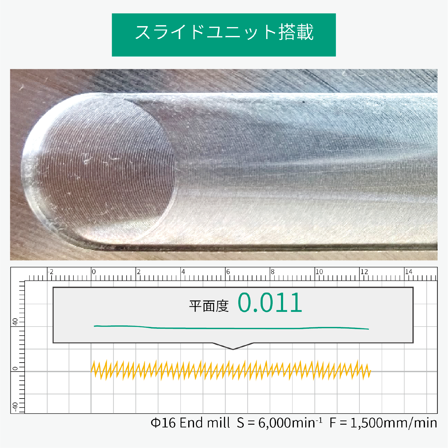 (2)高剛性スライドユニットで、ロボットだけでは達成不可能な高精度フライス加工を実現