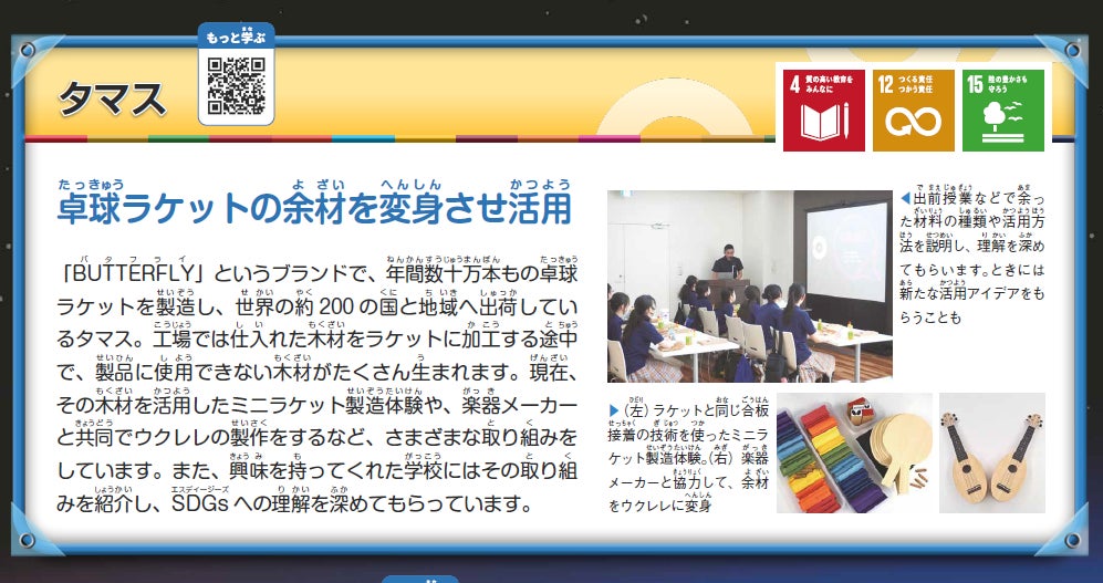 「バタフライ」ブランドを展開する株式会社タマスは、朝日新聞社・朝日学生新聞社が発行する小・中学生向けキャリア教育教材「おしごと年鑑」に3年連続で協賛しました。
