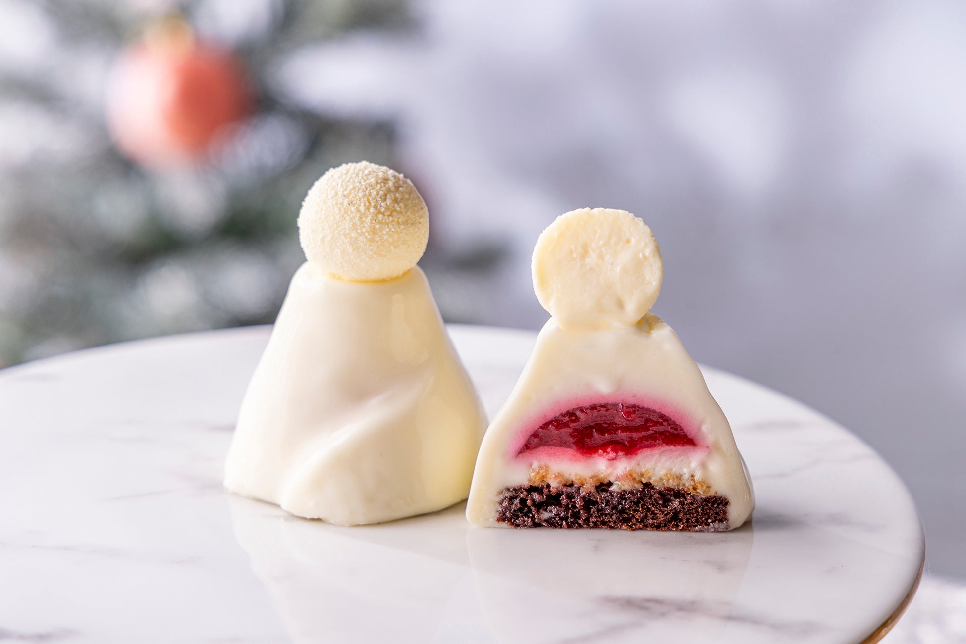 Francfrancのクリスマス限定アイテムで揃えたプレートやカップ&ソーサーで、キンプトン新宿東京とピエール・エルメ・パリのこだわりのスイーツを贅沢に味わえる、特別感たっぷりの内容でご用意しました。ホワイトクリスマスのテーマにちなんでオールホワイトで洗練されたビジュアルに仕上げたキンプトン新宿東京のスイーツ3種と、人気商品のイスパハンを含むピエール・エルメ・パリのスイーツ3種。プレミアムプランにはFrancfrancのクリスマスツリーやマカロンタワー、スノードームなどのディスプレイが含まれ、テーブル上が上品なかわいさでいっぱいに!ツリーには自分好みにオーナメントを飾り付けて楽しんで。