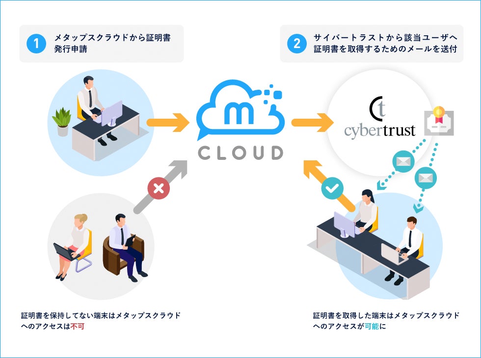 本機能の提供にあたっては、サイバートラスト株式会社(港区、代表取締役社長 眞柄 泰利)が提供する端末認証用証明書発行管理サービス「サイバートラスト デバイス ID」を活用します。