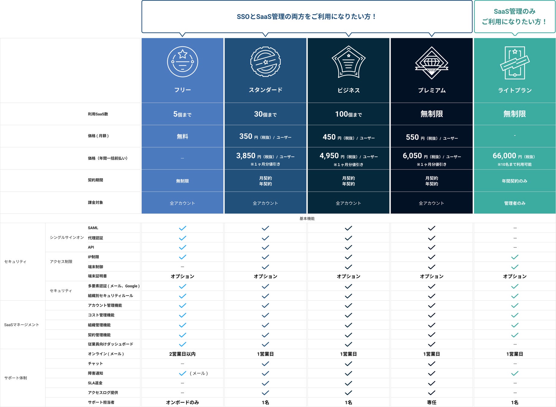 社内のSaaS利用状況やコストなどの把握を可能にする「SaaS管理」と、すべてのSaaSにひとつのID・パスワードでログイン可能な「ID管理(IDaaS)」の2つの機能を備えたSaaS一元管理ツールです。