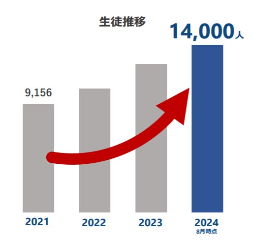 2021年の在籍生徒数9,156人から約4,900人増加し、14,000人を突破しました。(2024年8月時点)