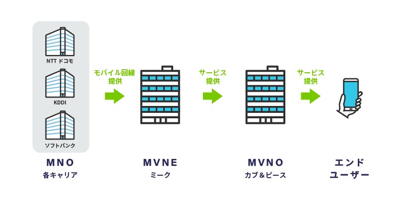 当社は、カブ&ピースが提供するサービス群のうち、『KABU&モバイル』をMVNEとして支援します。
