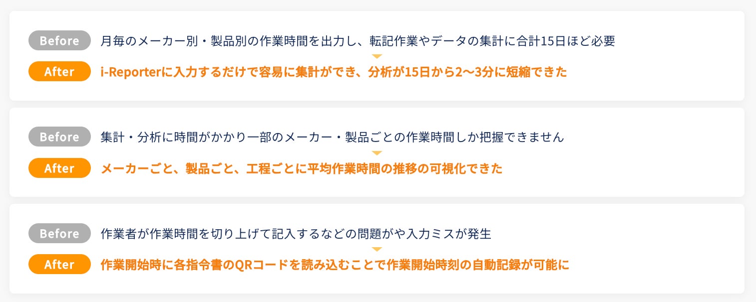 ①i-Reporterに入力するだけで気軽に集計ができ、分析が15日から2〜3分に短縮できた