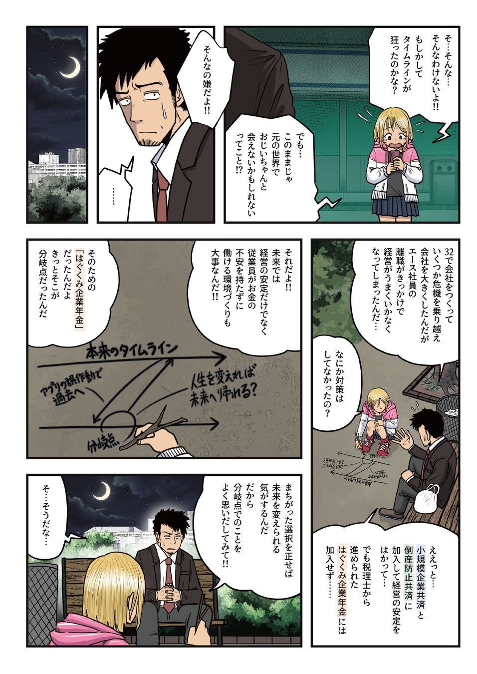 2024年2月に当社が企画・制作したオリジナルマンガ『マンガでわかる!はぐくみ企業年金』に続き、 新作を制作いたしました。今回は、“中小企業の経営を安定させる3本柱”として、はぐくみ企業年金・小規模企業共済・経営セーフティ共済(中小企業倒産防止共済)を活用するSF風のストーリーとなっており、各制度の特徴も説明しています。また、「はぐくみ企業年金」については導入企業様の声も掲載しており、導入後の企業側、従業員側双方のメリットがより詳しく分かる内容となっています。