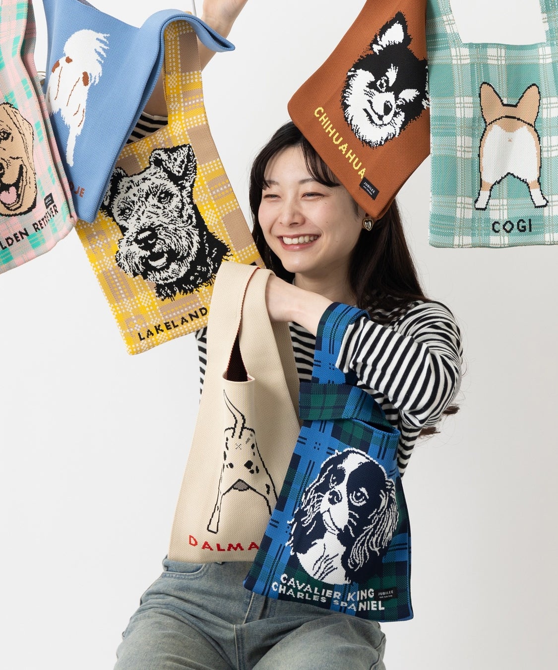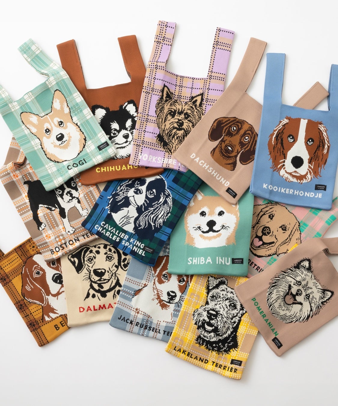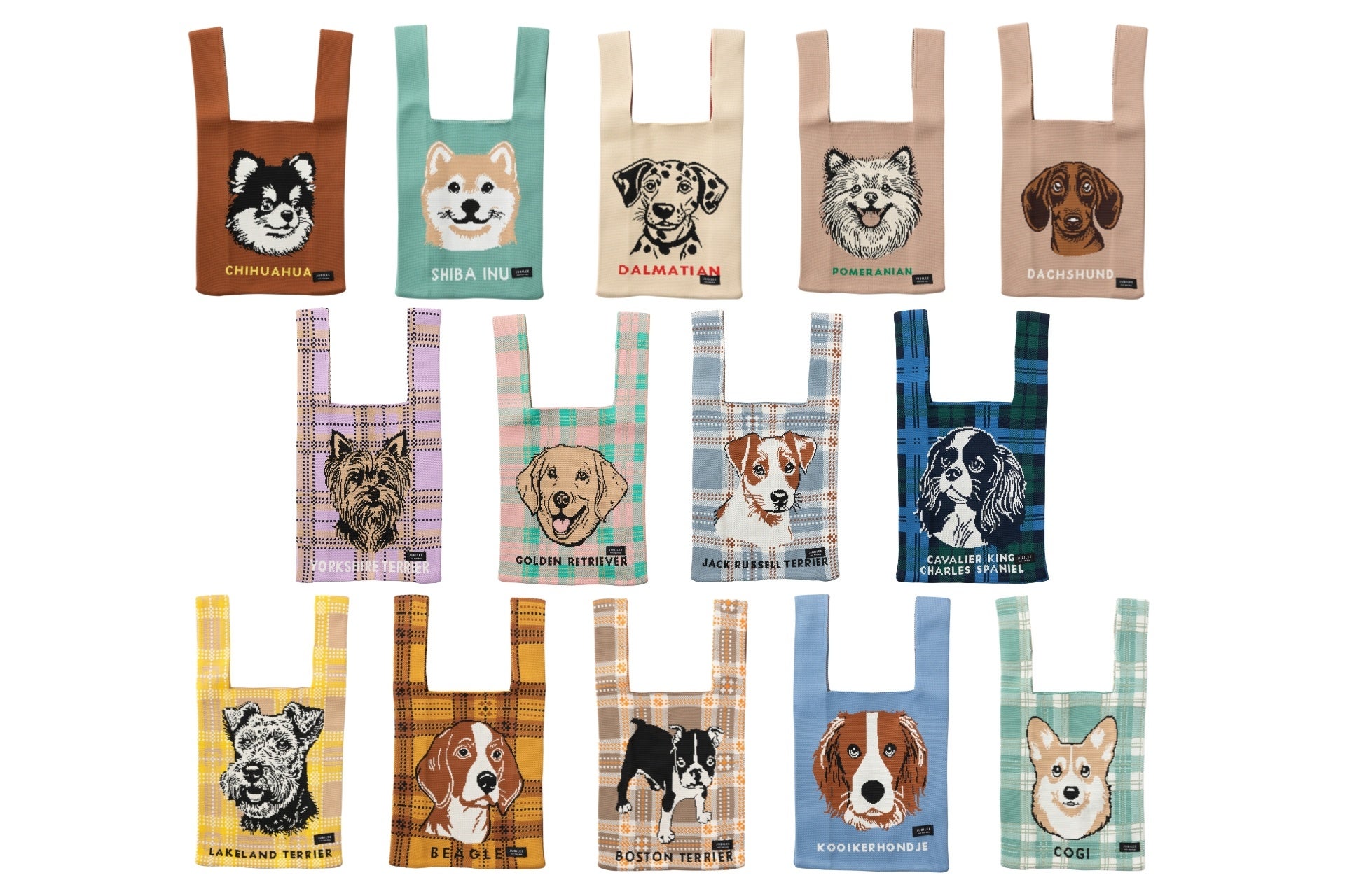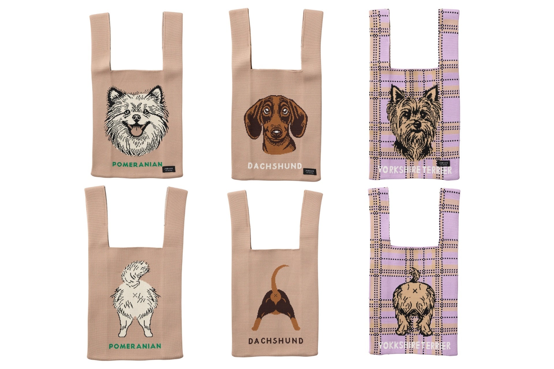 【キュートなおしり】雑貨ブランド「Jubilee」から14種のワンちゃんデザインニットバッグが新登場。