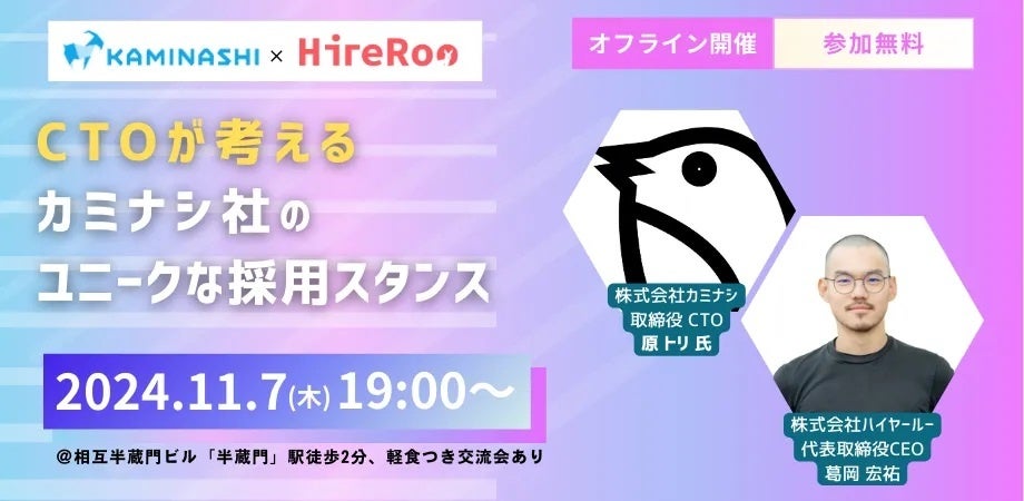 【エンジニア採用者必見】強い組織づくりを実現する採用とは?注目スタートアップ独自の採用スタンスを紹介!カミナシCTOが登壇、人事HR・CTO向けイベントを11月7日に開催