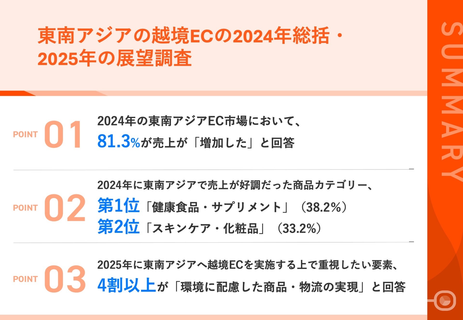 【東南アジアの越境ECの2024年総括と2025年展望】8割以上が「2023年より売上が増加した」と回答 売上増加の要因と売れ筋商品とは?