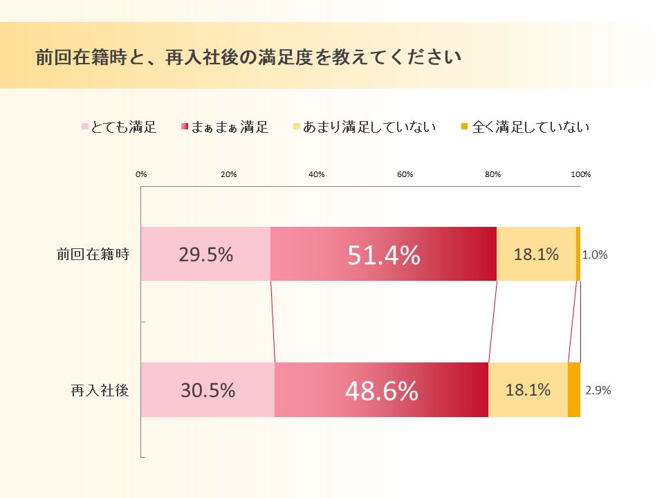 〜 約9割が、再入社後他社での経験が活かせていると思うと回答〜 〜9割以上が再入社してよかったと回答〜 〜再入社後年収が上がった人は46.7% 〜