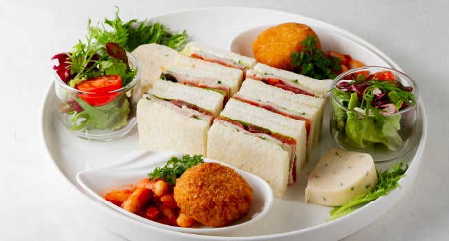 キューカンバーサンドイッチ/ベイクドビーンズとライスコロッケ
