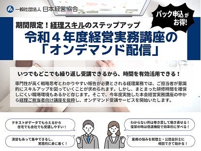 【経理部門のスキルアップ】令和4年度経営実務講座の「オンデマンド配信」を期間限定でサービス開始 お得なパック割引も実施
