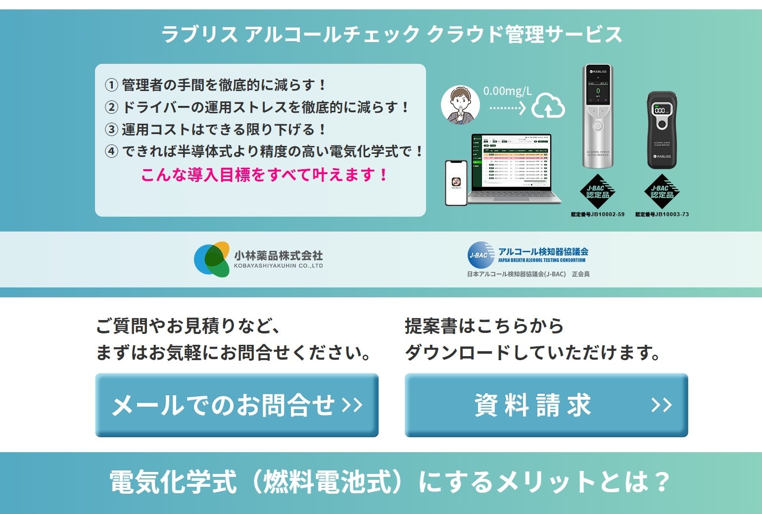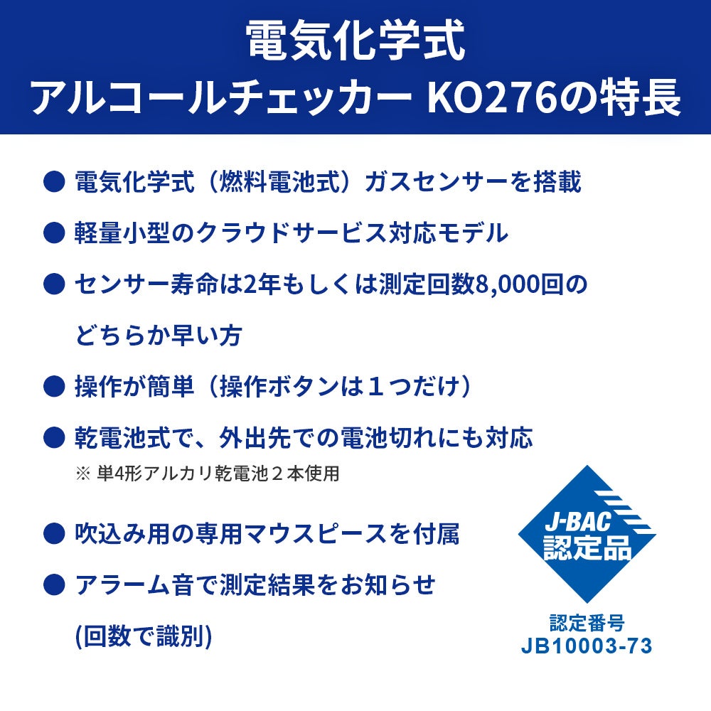 クラウド管理対応 アルコール検知器協議会認定機器 電気化学式アルコールチェッカー KO276 新発売のお知らせ