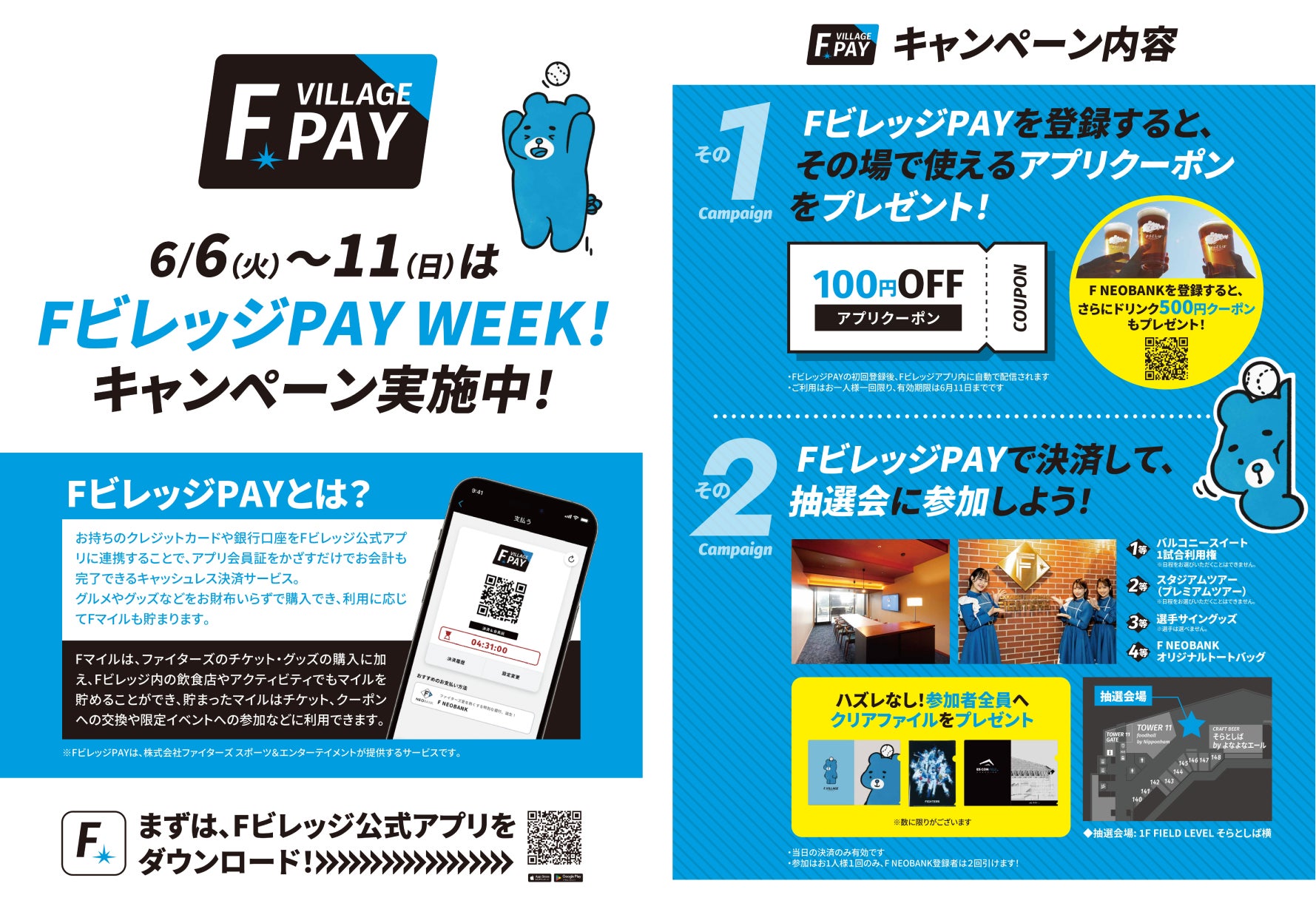 明日6/6(火)~11(日)はFビレッジPAY WEEK!お得なキャンペーンを開催!