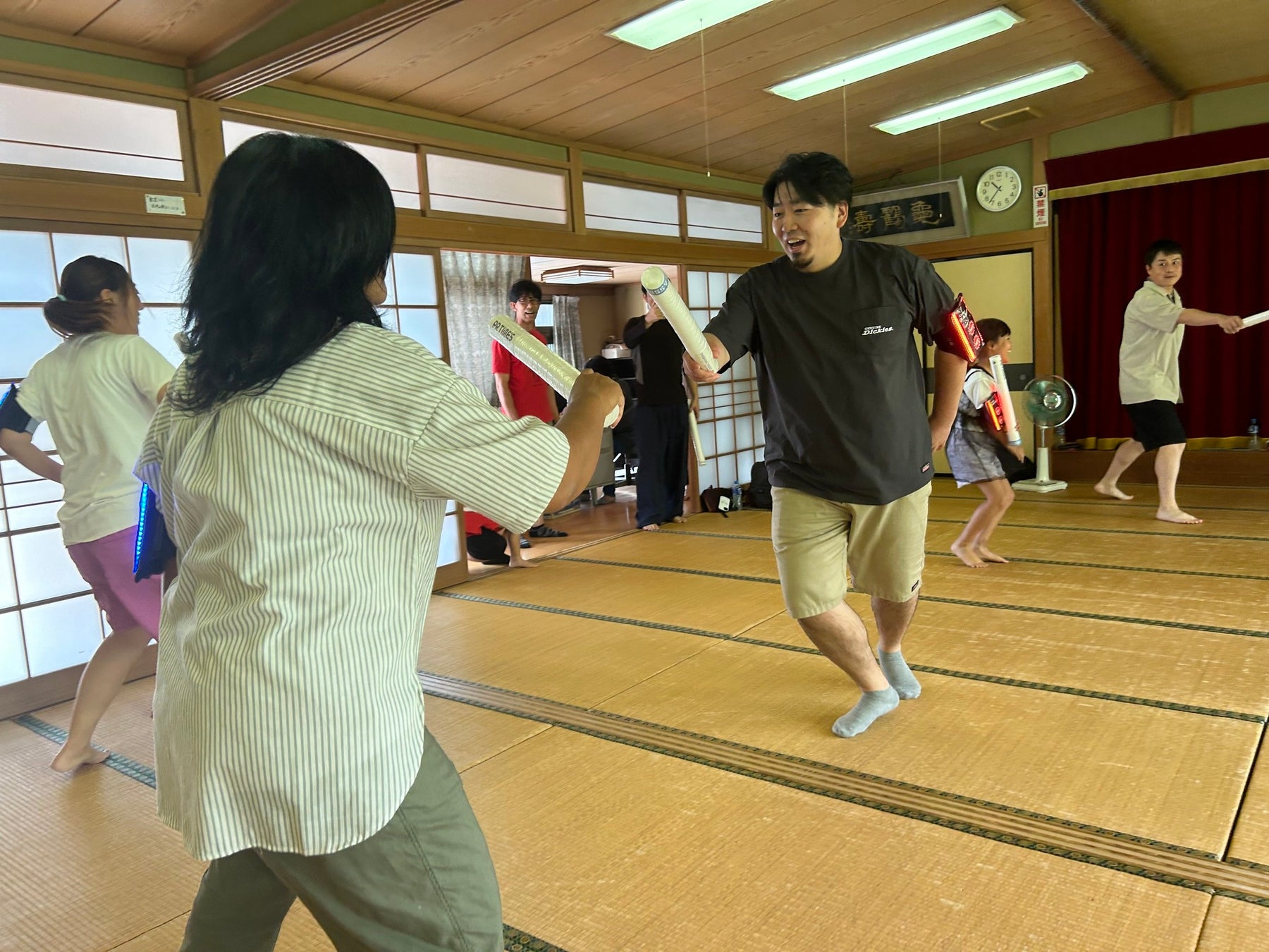 LEDで光る刀を使った1対1のバトルで、参加者から「予想以上に熱中した!」「親子で本気になって楽しんだ!」との声が上がりました。特に親子対決や夫婦対決が大好評でした。