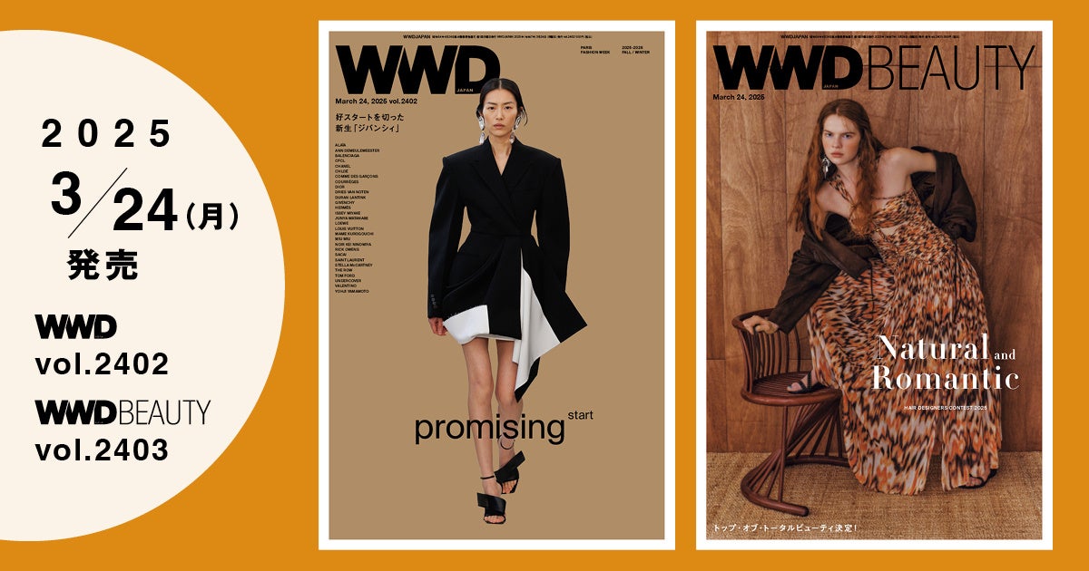 3月24日発売の「WWDJAPAN」は、2025-26年秋冬パリ・ファッション・ウイーク特集をお送りします。デザイナーのシャッフル人事が続く中、今シーズンは「ジバンシィ(GIVENCHY)」がサラ・バートン(Sarah Burton)で、「トム フォード(TOM FORD)」がハイダー・アッカーマン(Haider Ackermann)で、そして「ドリス ヴァン ノッテン(DRIES VAN NOTEN)」はジュリアン・クロスナー(Julian Klausner)で、いずれも素晴らしい新章の幕開けを思わせるコレクションを発表してくれました。この特集では、上述3ブランドを含む、パリ・ファッション・ウイークで光り輝いたブランドを豊富な写真と共に紹介しています。また、「WWDJAPAN BEAUTY付録」では「第8回 WWDBEAUTYヘアデザイナーズコンテスト」の結果を発表します。