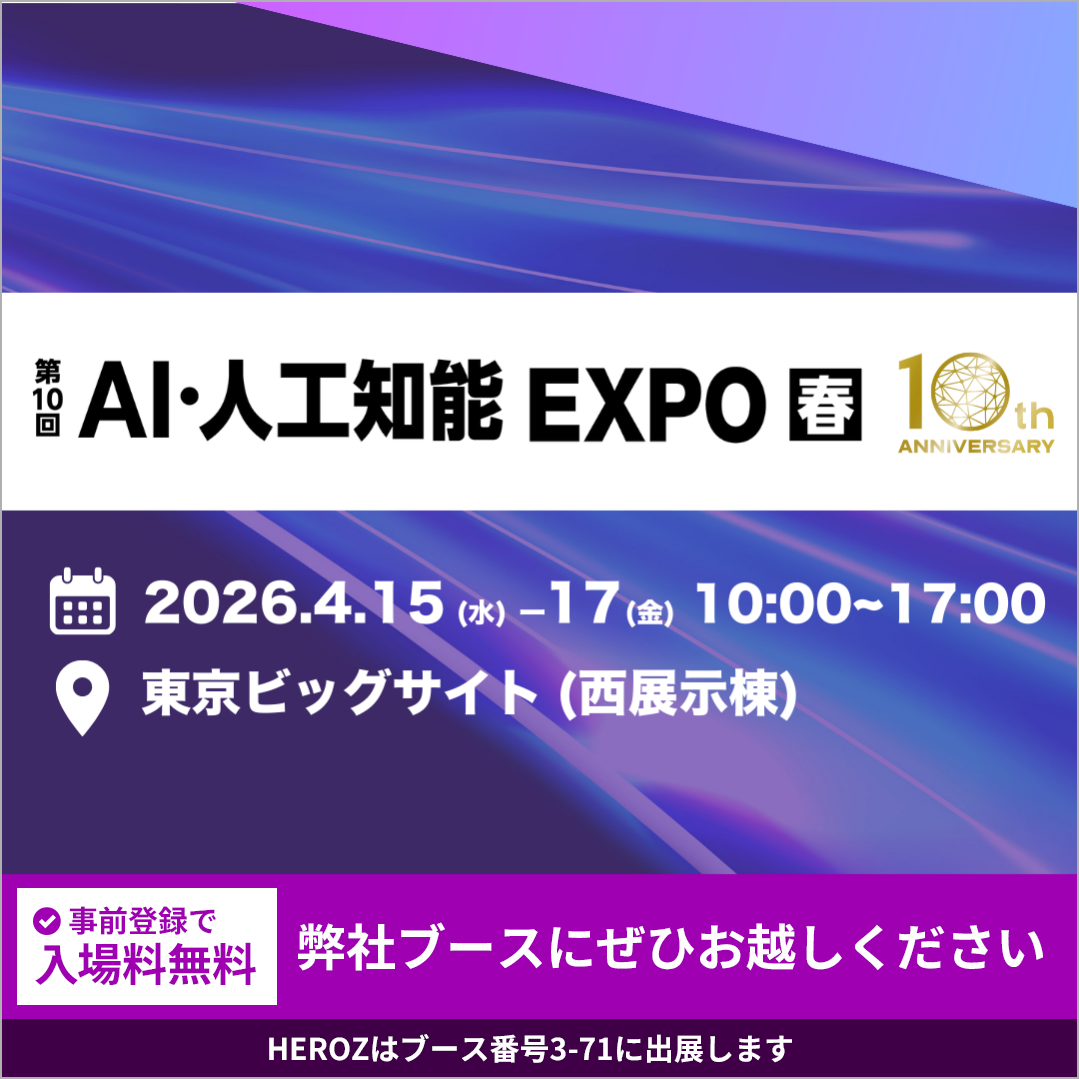 HEROZ、「第10回 AI・人工知能 EXPO【春】」に出展決定! AIを導入で終わらせない、実務直結型支援をご紹介
