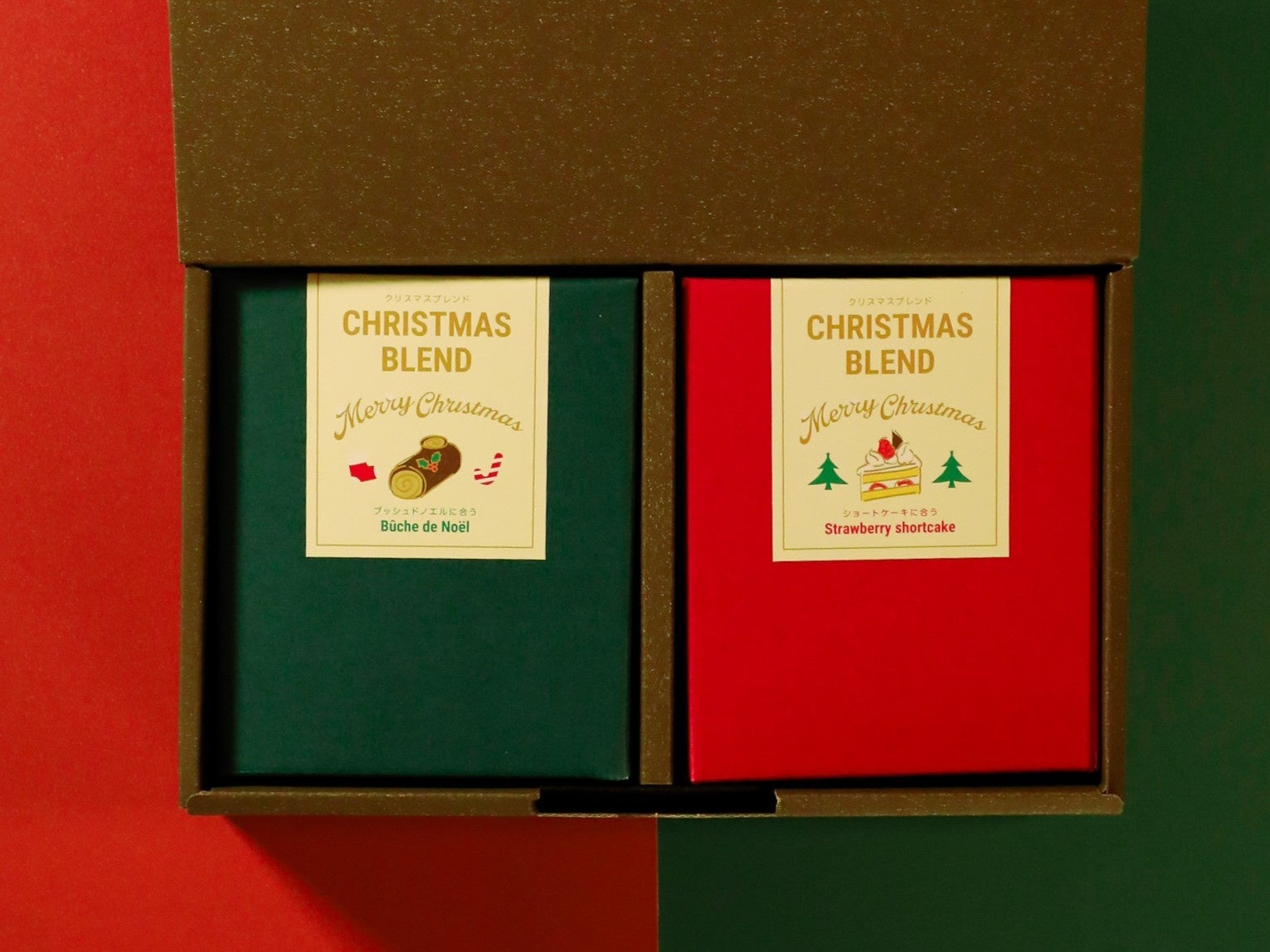 聖夜を彩る2つの味わいを、大切な人へ。今年のクリスマスケーキにぴったりな、ブッシュ・ド・ノエル用とストロベリーショートケーキ用のブレンドを詰め合わせました。