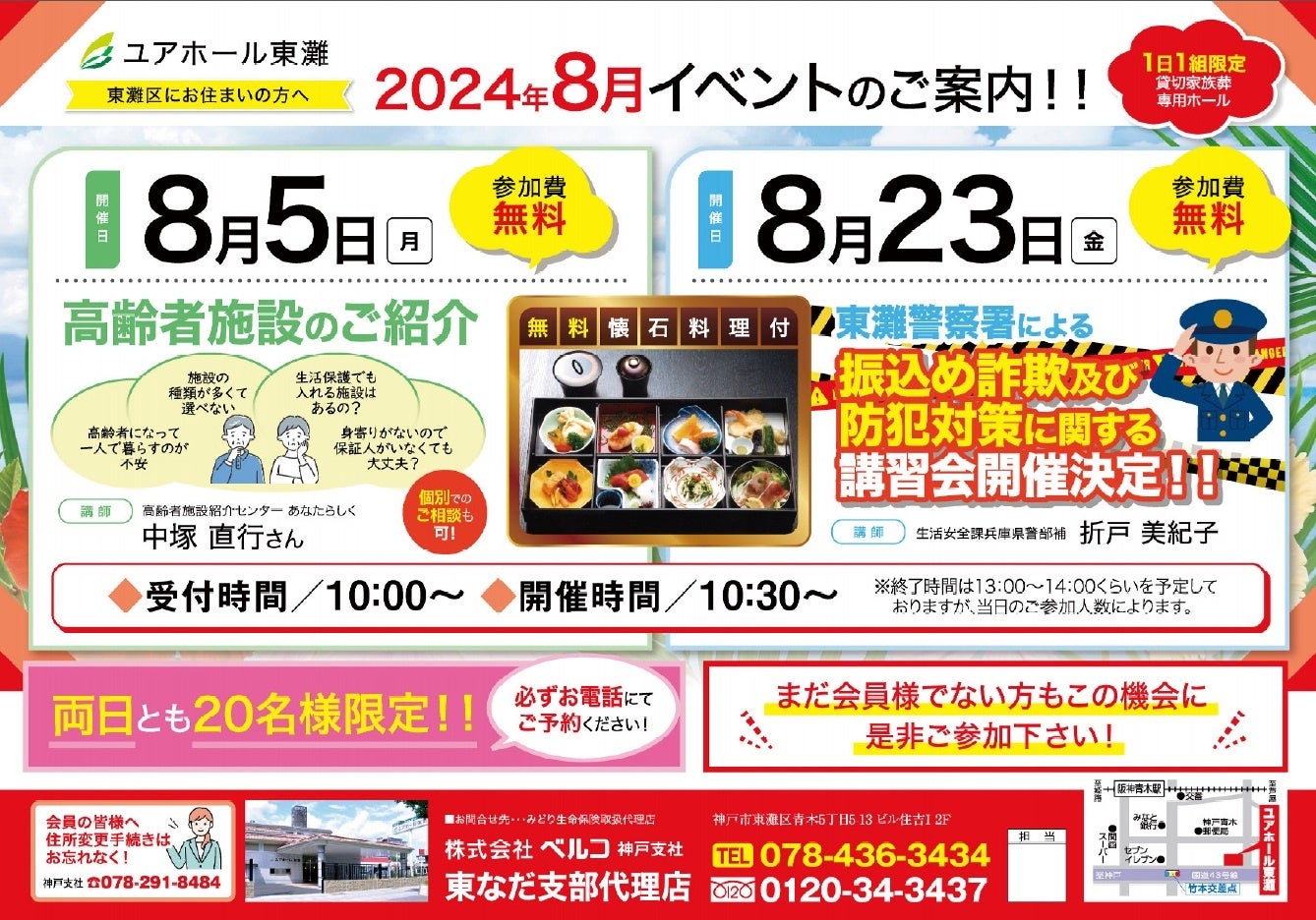 2024年8月21日、東灘警察署主催の「振り込め詐欺及び防犯対策に関する講習会」を開催いたします。この講習会では、兵庫県警部補の折戸美紀子氏が講師を務め、詐欺被害や犯罪から身を守るための具体的な対策について解説します。
