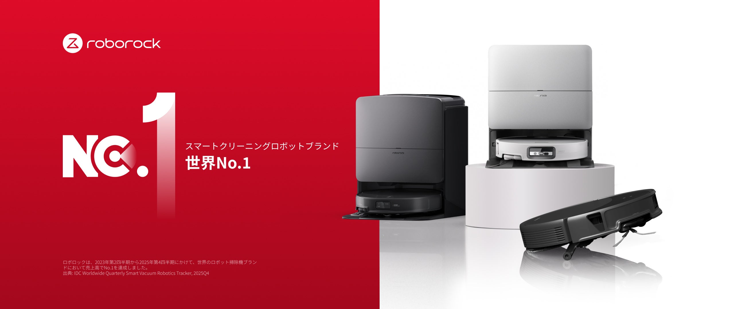 ロボット掃除機やスティック掃除機を製造・開発するBeijing Roborock Technology Co.,Ltd.(本社:中国北京、社長:全剛)は、IDC社発行の「Worldwide Quarterly Smart Vacuum Robotics Tracker,2025」において、ロボット掃除機分野の出荷台数および市場シェアで世界第1位を獲得したことを発表しました。