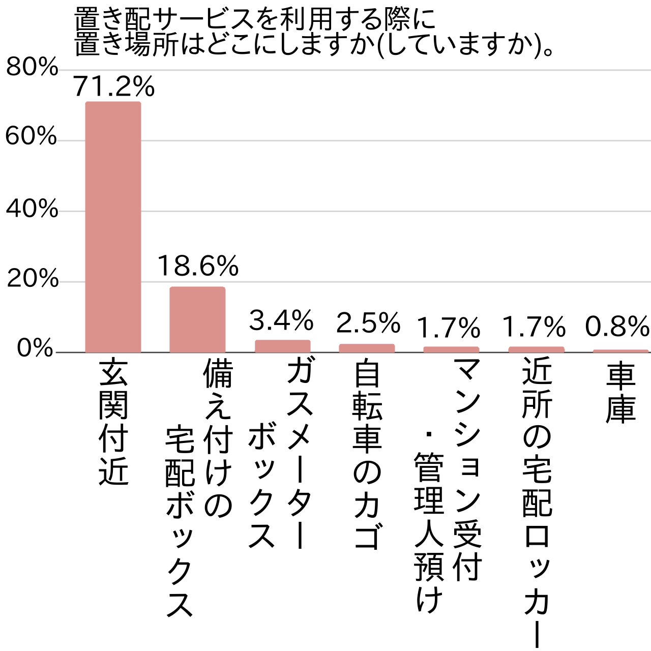アンケートでは次に、置き配サービスを利用する際に置き場所はどこにするか(しているか)を尋ねました。