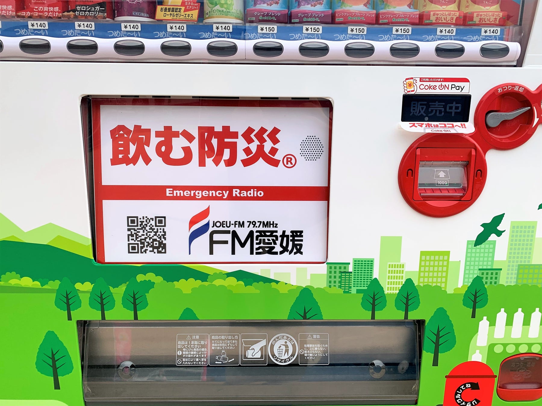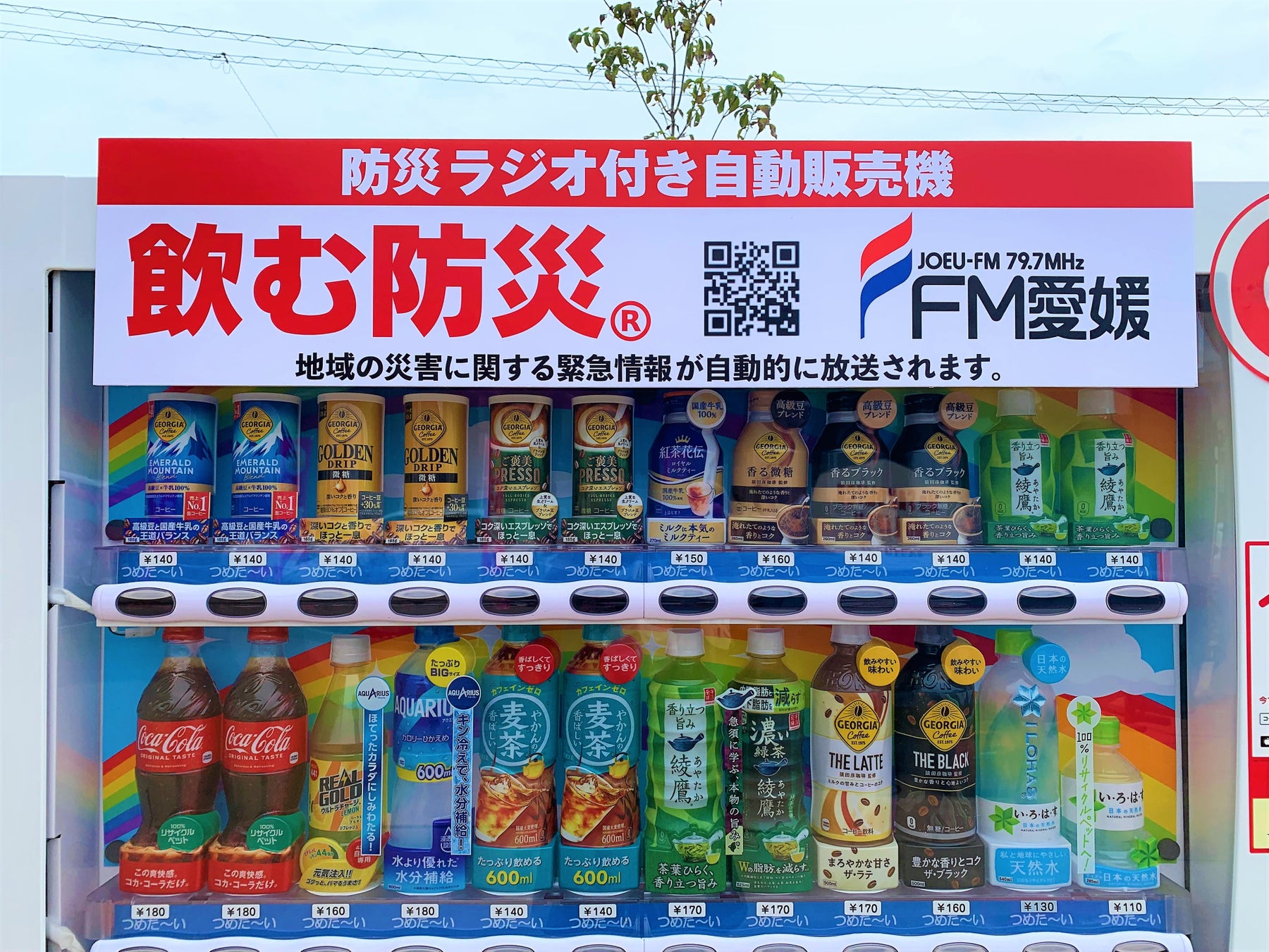 【FM愛媛】防災ラジオ付きの自動販売機 愛媛県に四国 1号機設置!