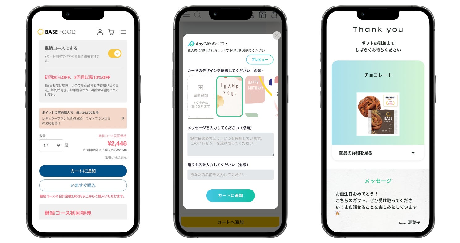 スマートフード完全栄養食のパイオニア「ベースフード」にて、eギフトサービス『AnyGift』を導入