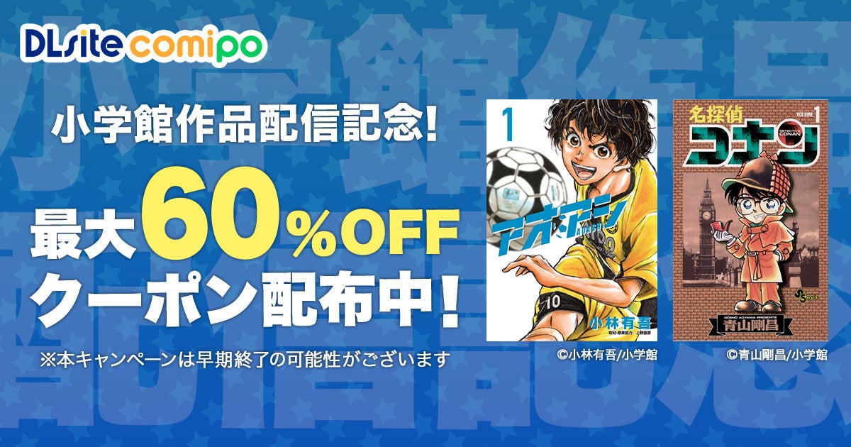 『名探偵コナン』『アオアシ』『葬送のフリーレン』人気作がクーポンで最大60%オフ! 約9,300作品、約4.6万冊の小学館コミック作品が「DLsite comipo」でお取り扱いを開始
