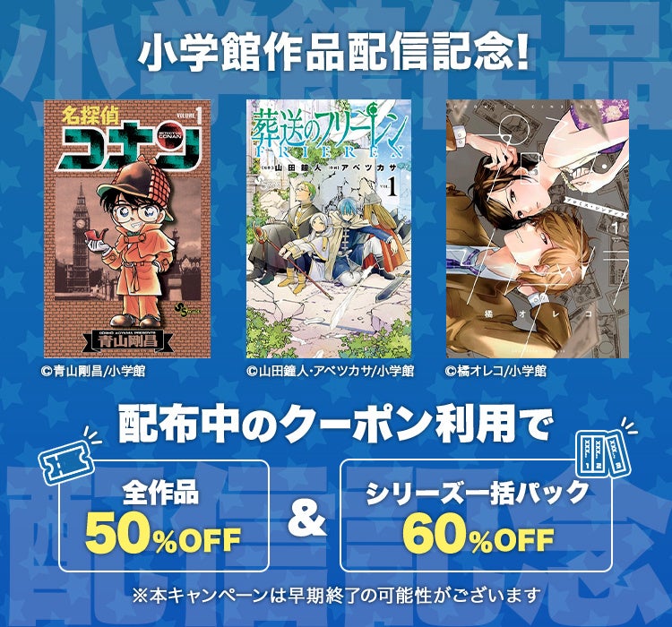 ※各クーポンについて、告知した対象期間中であっても作品の販売状況や各種事由をふまえて予定を繰り上げて早期に終了する場合がございます。あらかじめご了承ください。