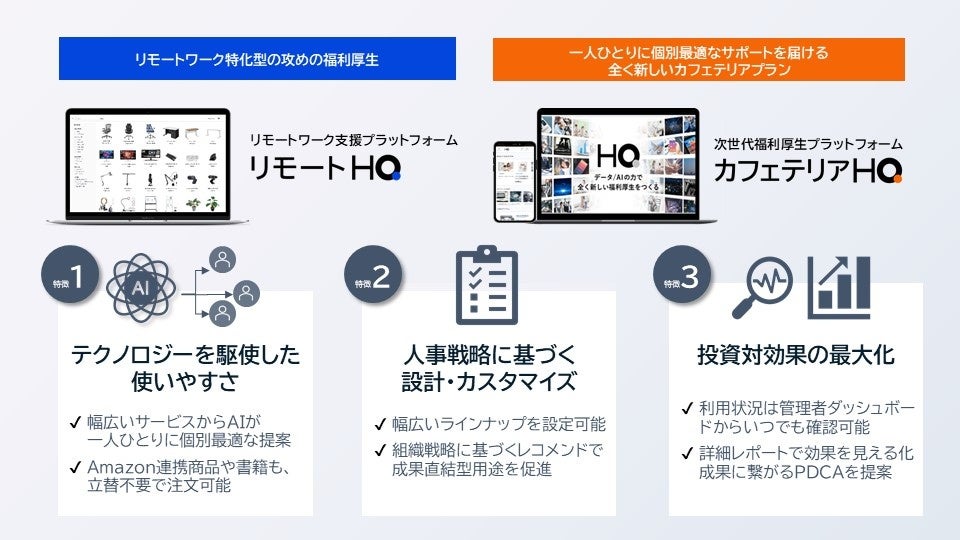 HQは、新しい時代のニーズにあわせて、EX(従業員体験)全体を向上させ、「福利厚生をコストから投資へ」を実現するEXプラットフォームへと進化してまいります。