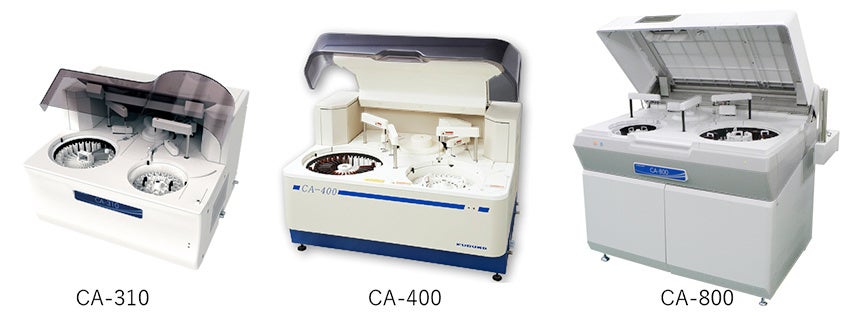 卓上モデルである「型式:CA-310」「型式:CA-400」は、省スペースに設置可能な小型機で大型機並みの分注精度と測光精度を実現し、新製品「型式:CA-310」は、糖尿病検査で需要の高いHbA1c自動溶血機能による測定にも対応しています。フロアトップモデルである「型式:CA-800」は、大量の検体を効率的に連続検査できる高性能機であり、専用ラックハンドラや汎用搬送ラインとの接続による拡張にも対応しています。