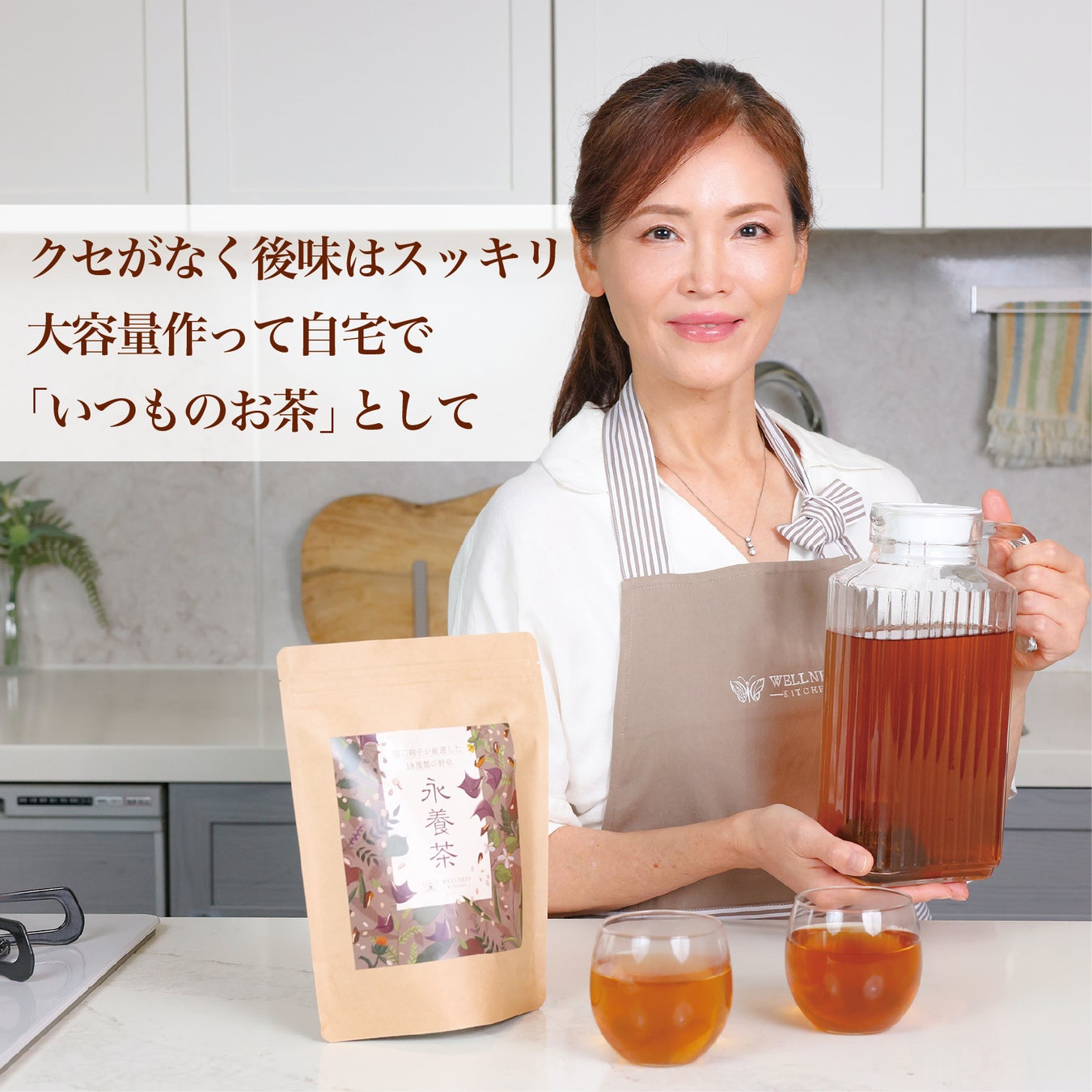 また、永養茶に含まれる「熊笹」「ドクダミ」「ビワ」などが、巡りを良くし、スッキリとした毎日に。
