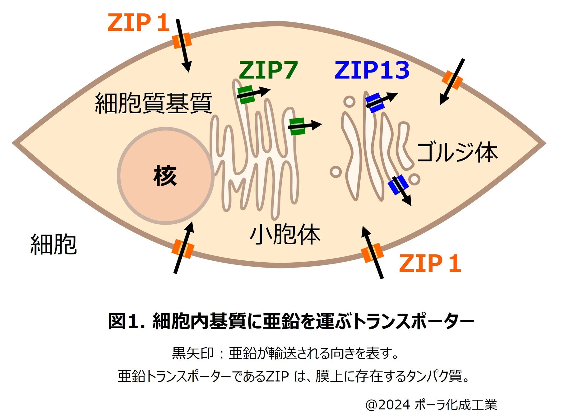 そこでポーラ化成工業は、真皮のコラーゲンを産生する線維芽細胞について、細胞質基質に亜鉛を運ぶトランスポーターの遺伝子発現を増やす作用を持つ成分を探しました。