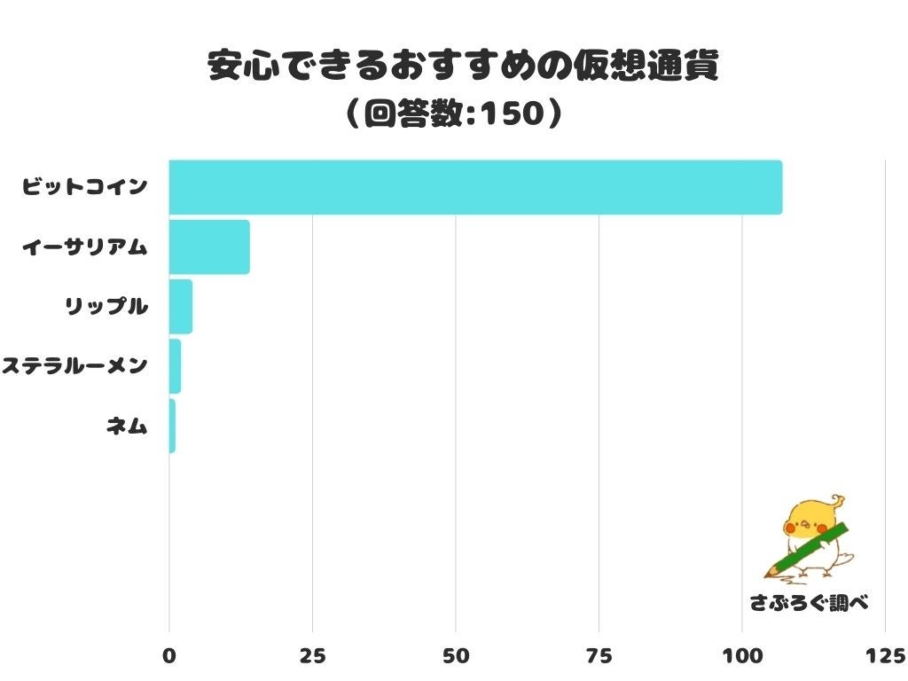 圧倒的1位で、知名度が高く安心と「ビットコイン」が選ばれました。