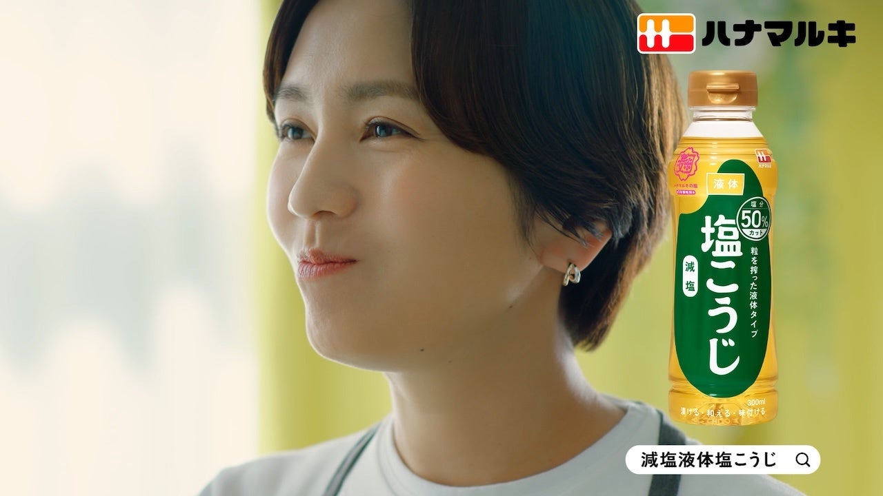 本CMは、「塩こうじならハナマルキ♪」というおなじみのリズムから始まります。キッチンで「液体塩こうじ」シリーズを手に、力強くうなずく和田さん。そして食卓から“おかわり!”の声が聞こえてきそうな、和田さん考案のレシピが次々と登場します。ラストの「これ1本で、味がきまる。」というフレーズには、液体塩こうじの魅力を知り尽くした和田さんの実感がこもっています。