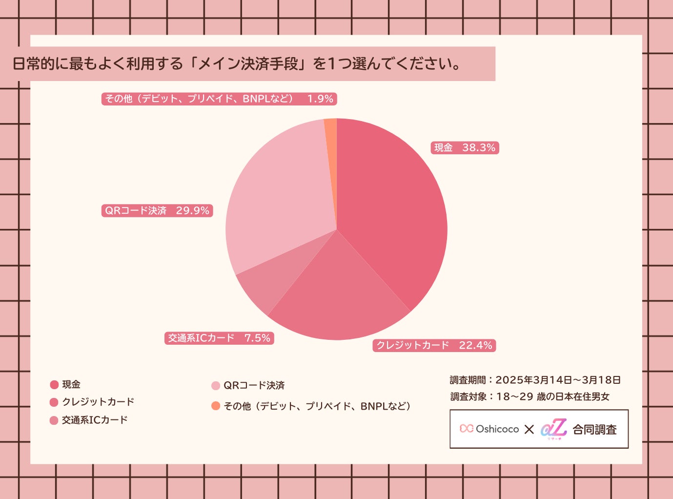 Z世代のメイン決済手段として、現金よりキャッシュレス決済の割合が高いという結果に。