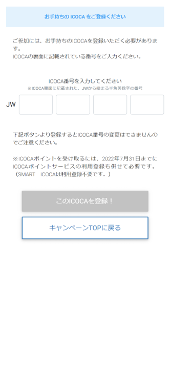 ※ICOCAポイントバックには2022年7月31日(日)までにICOCAポイントサービスの利用登録(無料)の完了が必要です。 SMART ICOCAをご利用の場合は、自動で利用登録されますので利用登録不要です。