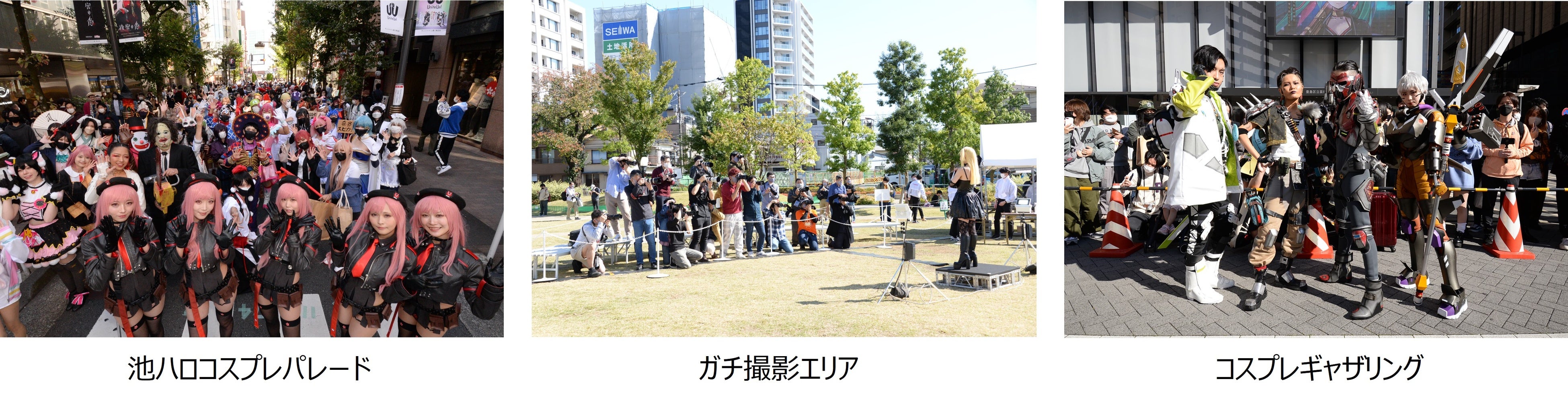 開催2日目に行われた「池ハロコスプレパレード」では、歩行者優先道路となったサンシャイン通りからHareza池袋前を200名超のコスプレイヤーが練り歩きました。沿道には大勢のギャラリーが集まり、手を振ったり撮影を楽しんだりと、池袋の街は笑顔であふれハロウィンムード一色に染まりました。