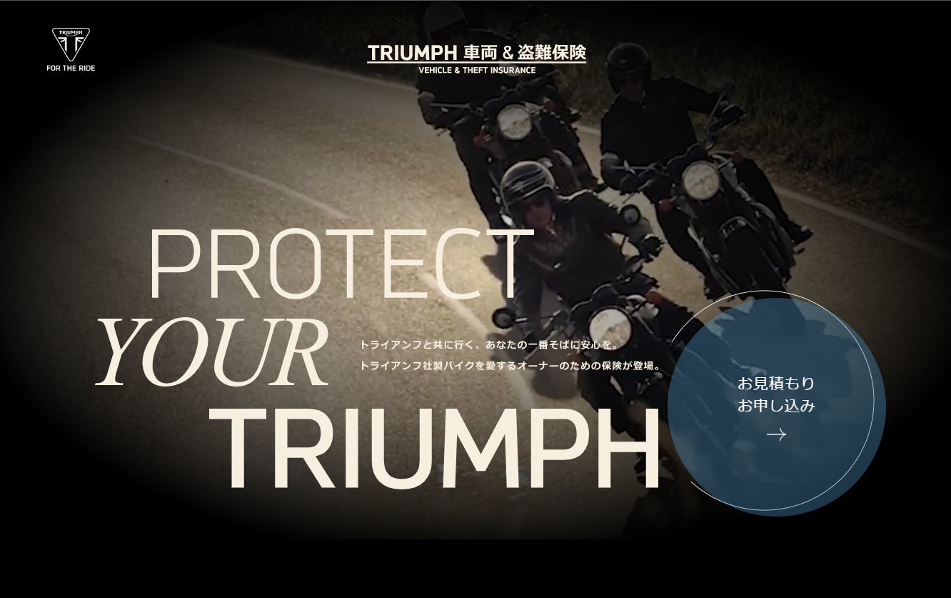 トライアンフオーナーの皆様のみが加入いただける、トライアンフ専用バイク車両保険です。