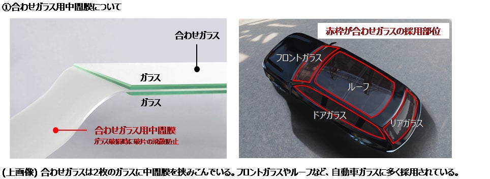 合わせガラス用中間膜、遮音膜、遮熱膜、カラー/デザイン膜、HUD用くさび形中間膜について