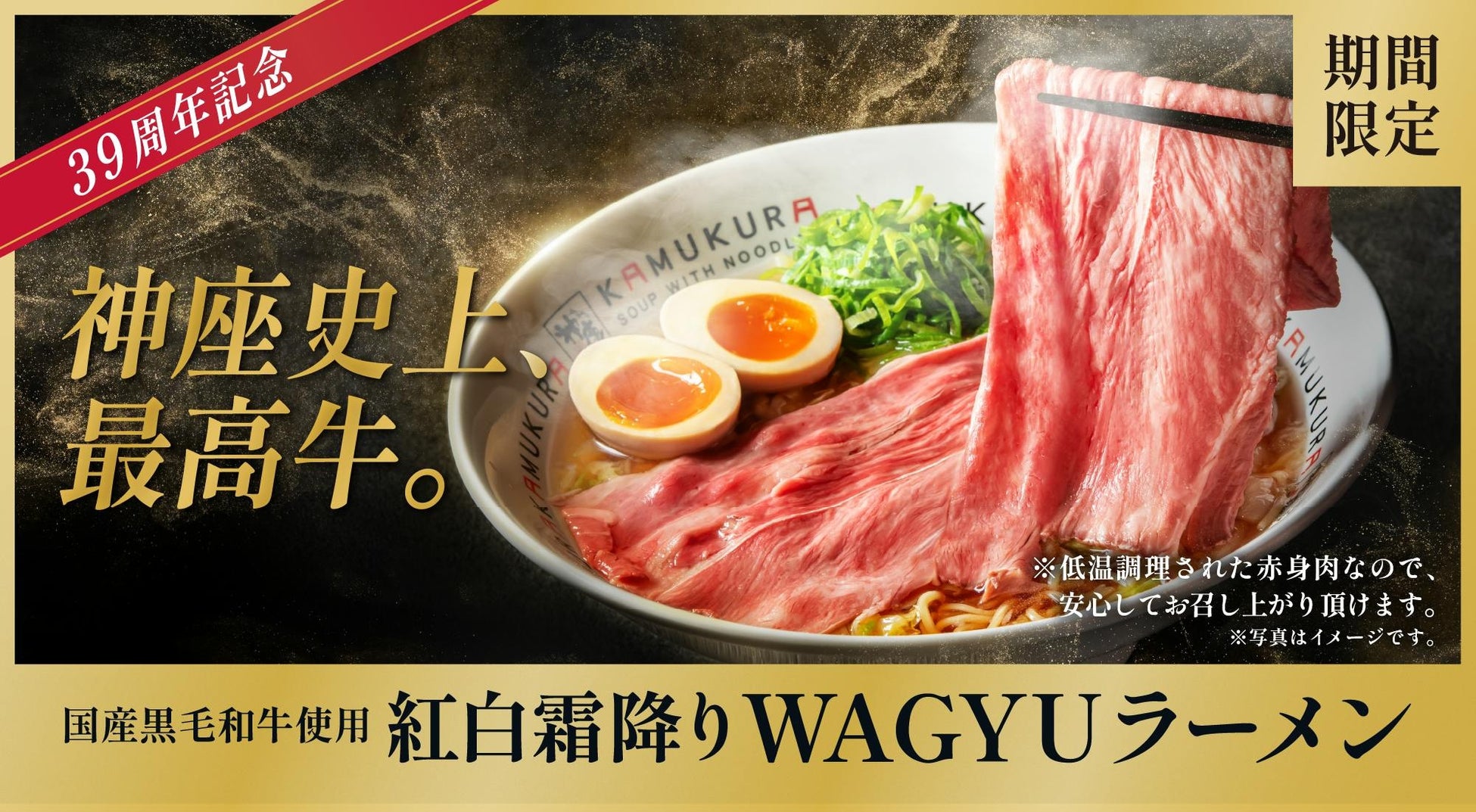 39周年の感謝を込めて、神座史上、“最もプレミアムな国産黒毛和牛”を味わい尽くす至福の一杯。販売期間:7月2日(水)~9月2日(火)