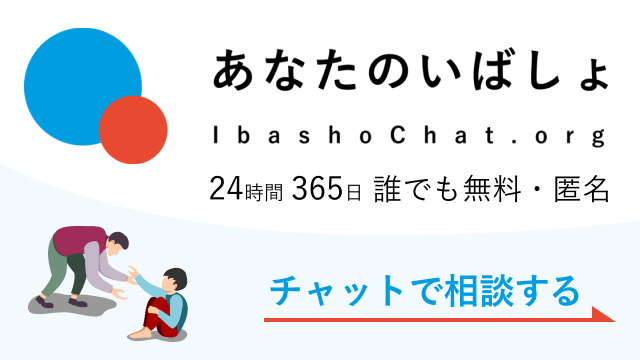 「あなたのいばしょチャット相談」は、特定非営利活動法人あなたのいばしょが運営する、24時間365日、年齢や性別を問わず誰でも無料・匿名で利用できるチャット相談窓口で、厚生労働省自殺防止対策事業補助事業、厚生労働省支援情報検索サイト登録事業となっています。