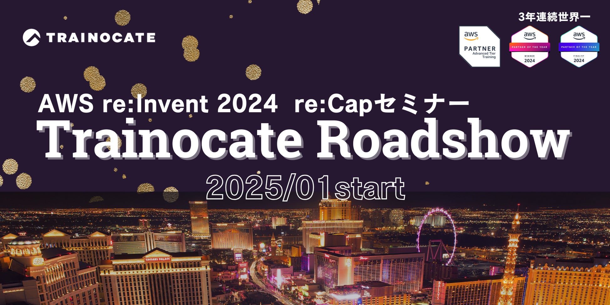 【最新!AWS re:Invent 2024を振り返る】3年連続世界一!アワード受賞記念。無料re:Capセミナー Trainocate Roadshow を2025年1月よりシリーズで豪華6開催!
