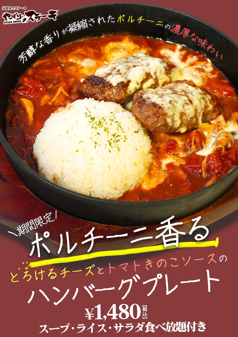 【やっぱりステーキに食欲の秋がやってきた】香り高いポルチーニとハンバーグ・チーズの相性抜群な新メニューが発売!