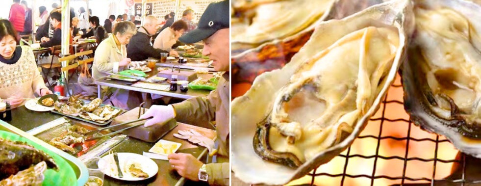 ▶︎三陸直送の新鮮な焼き牡蠣は格別!!