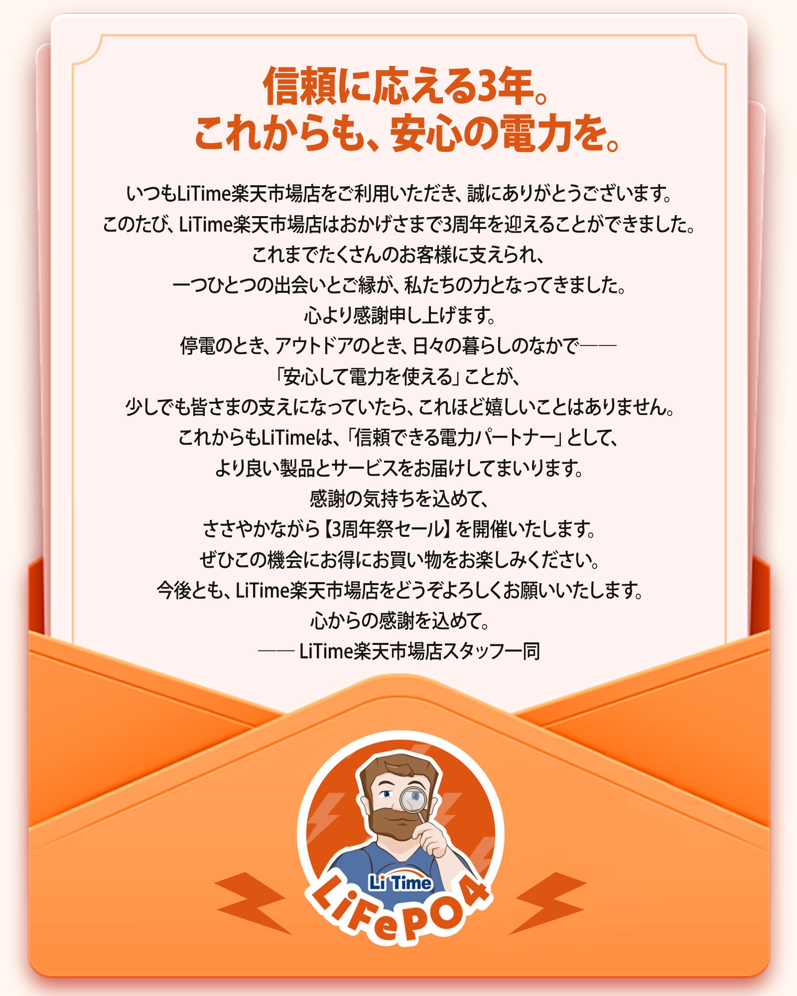 LiTime楽天市場店 開店3周年記念・感謝キャンペーン