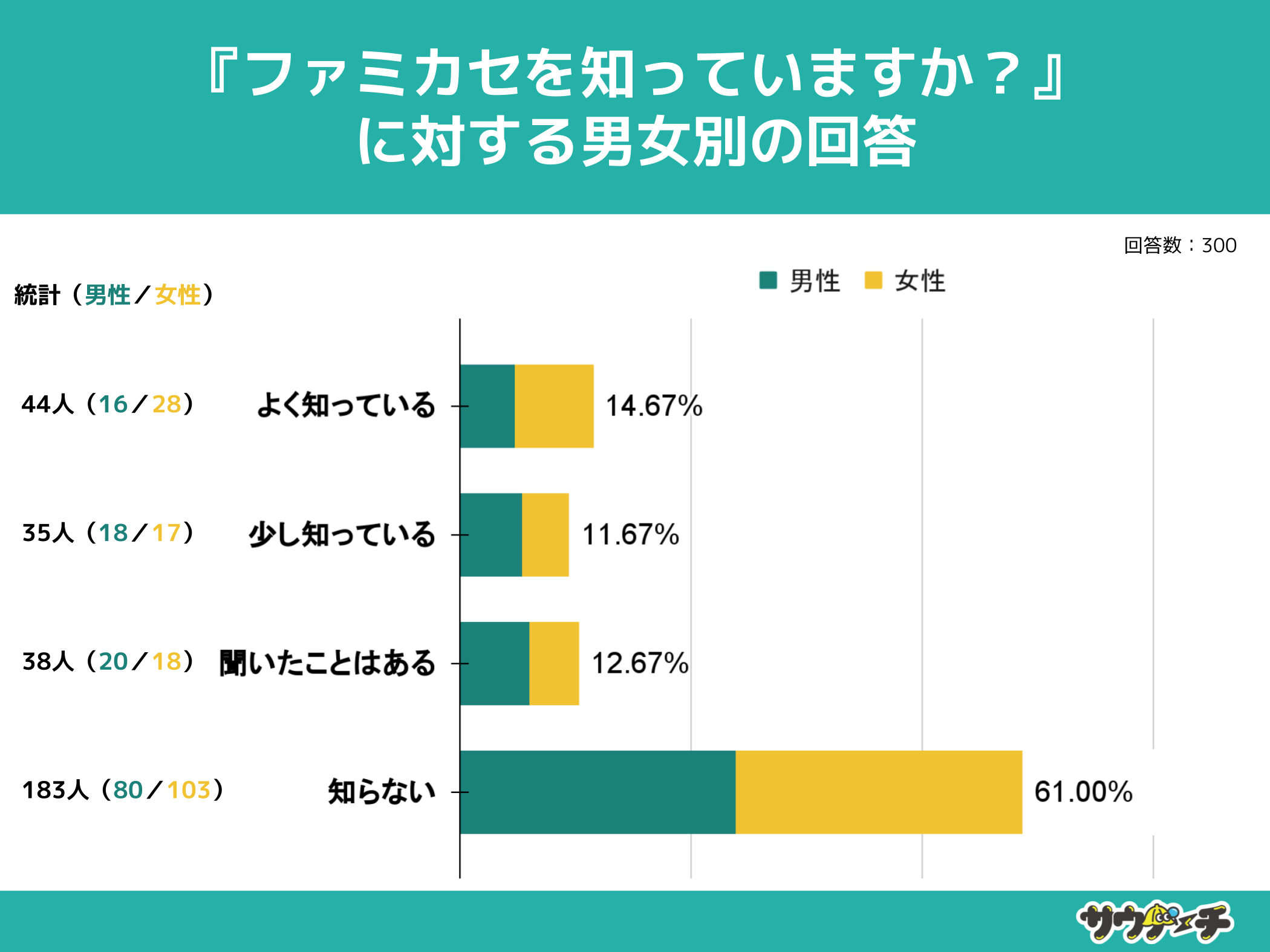 10〜30代男女の61%が、ファミカセを知らないと回答【ファミカセについてのアンケート】