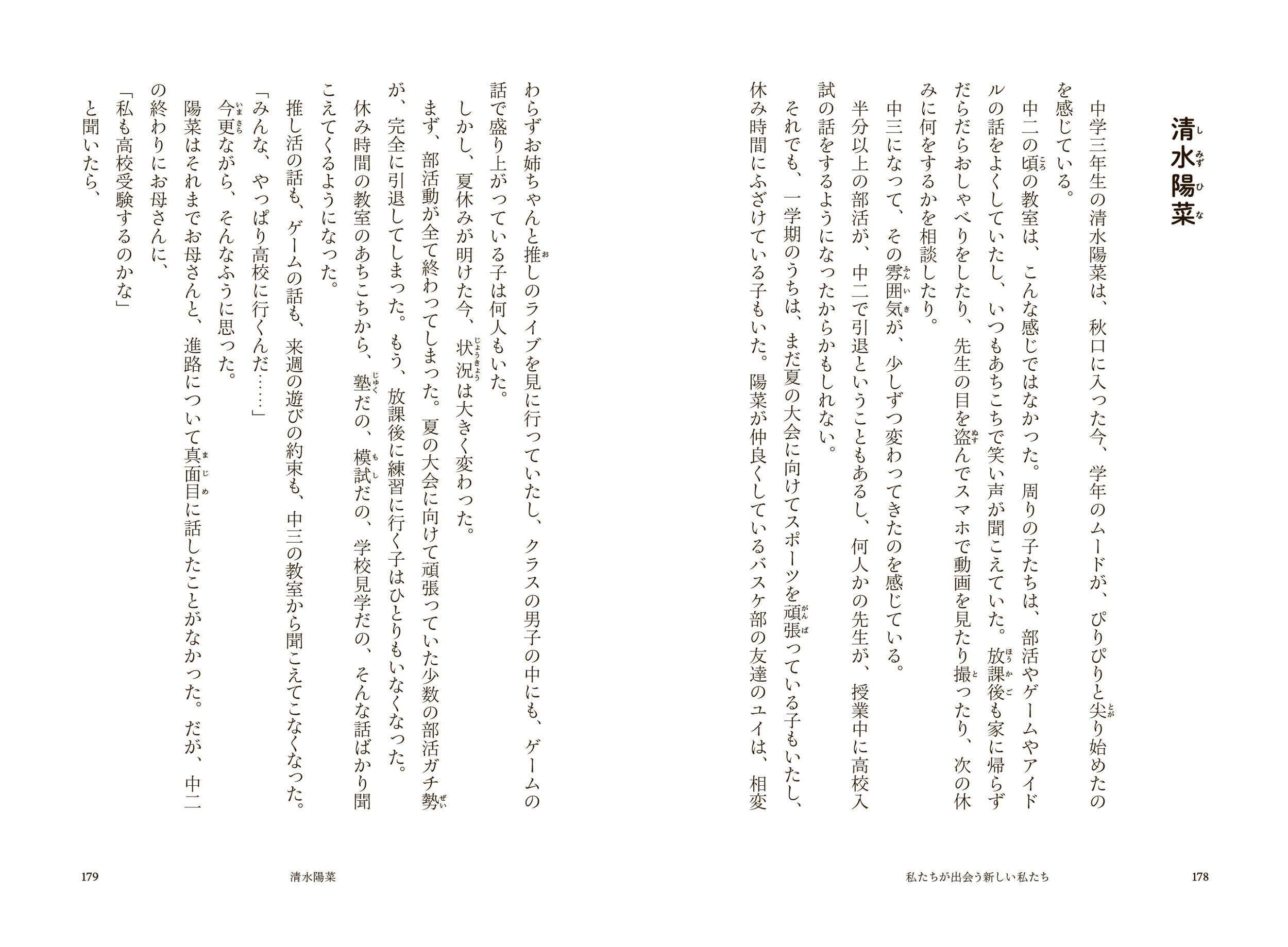 発達障害やグレーゾーン、スマホ所持やゲーム依存、不登校や起立性調節障害、ヤングケアラーや貧困、自身の適性への疑問と進路選択など、現代の子どもたちの抱えている問題を反映しつつ描く、同年代の読者へ向けた葛藤と成長の物語。